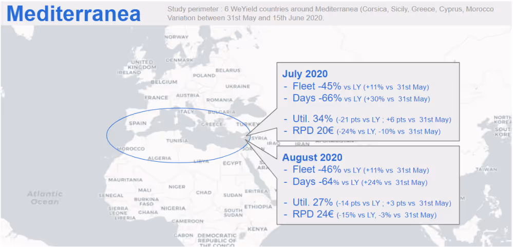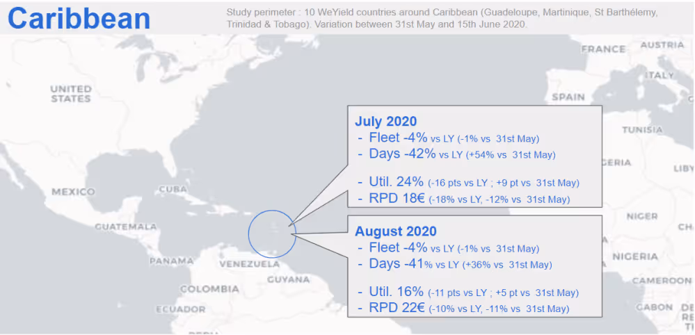 In these difficult times for the tourism industry in general and for the car rental industry, WeYield has decided to aggregate anonymized data from the various clients we have per geographical zone.