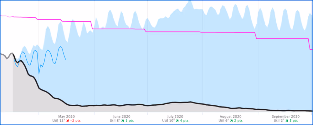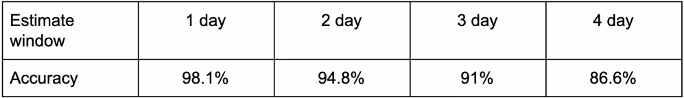 This is in a way reassuring, because it means that forecasting really has an edge vs. estimate in these periods, as it ignores noise. It shows that the machine learning algorithms are really efficient in finding the right correlations in the whole activity dataset to make accurate predictions about final levels of activity.